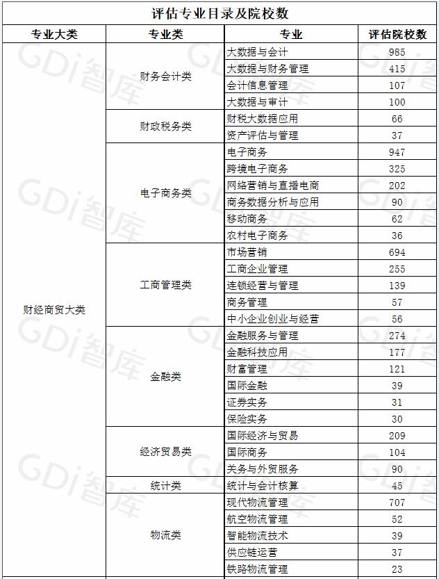 评估专业目录及院校数