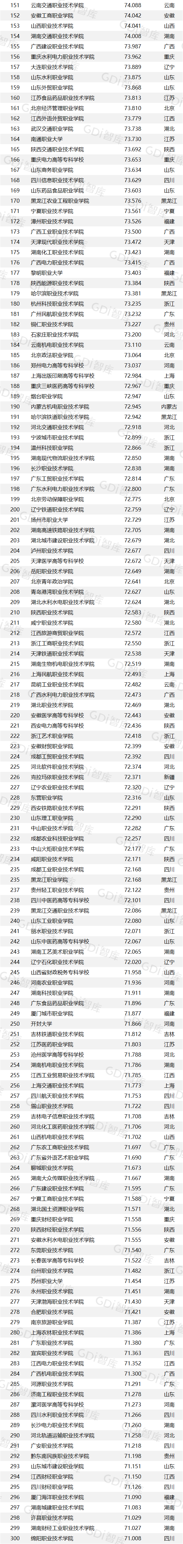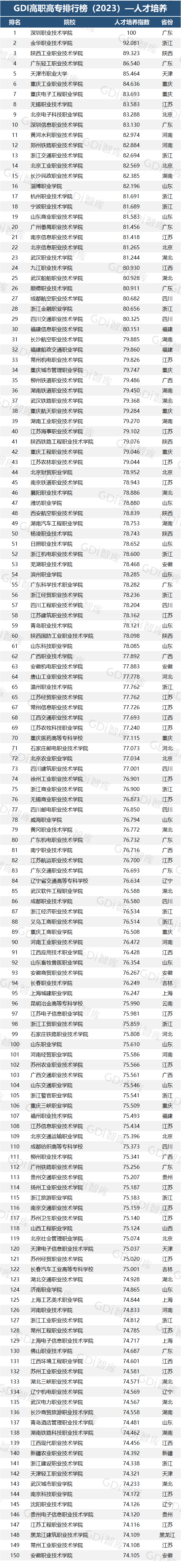 GDI高职高专排行榜(2023)—人才培养