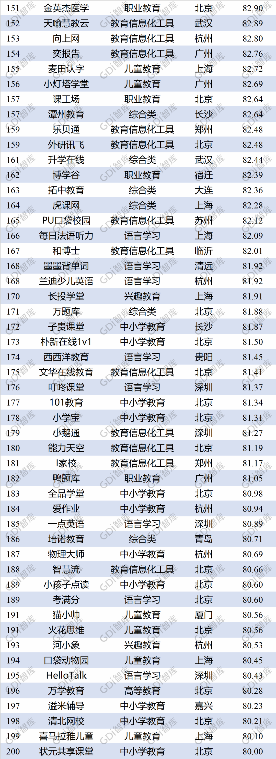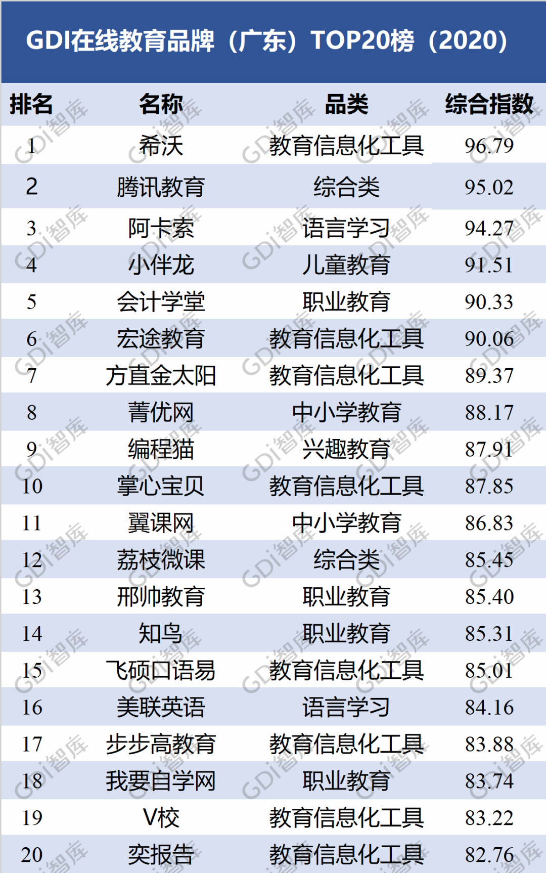 新冠肺炎疫情防控期间,大中小学校和培训机构“停课不停学”,2.65亿在校生多数转向线上课程,在线教育行业呈爆发式增长态势。2020年5月12日,广州日报数据和数字化研究院(GDI智库)发布《在线教育品牌TOP200榜(2020)》(以下简称《榜单》),以品牌规模、品牌影响力、品牌创新力和品牌美誉度四项指标综合评估在线教育品牌的影响力。