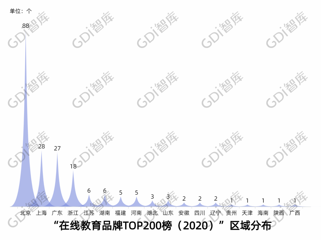 经济技术较为发达的东部沿海地区和教育重镇城市成为上榜品牌的主要分布地区。北京优势明显。长三角城市上榜品牌占总数的27%。上榜的广东品牌主要分布在珠江三角洲地区的广州、深圳、佛山和东莞。此外,湖南(6个)、福建(5个)、河南(5个)等省份上榜品牌数量也较多。
