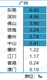 (补充说明:根据地理位置将粤港澳大湾区划分为珠江东岸、珠江西岸和港澳地区。珠江东岸指深圳、东莞、惠州三地;珠江西岸指广州、珠海、佛山、中山、江门、肇庆六地;港澳地区指香港特别行政区和澳门特别行政区。)