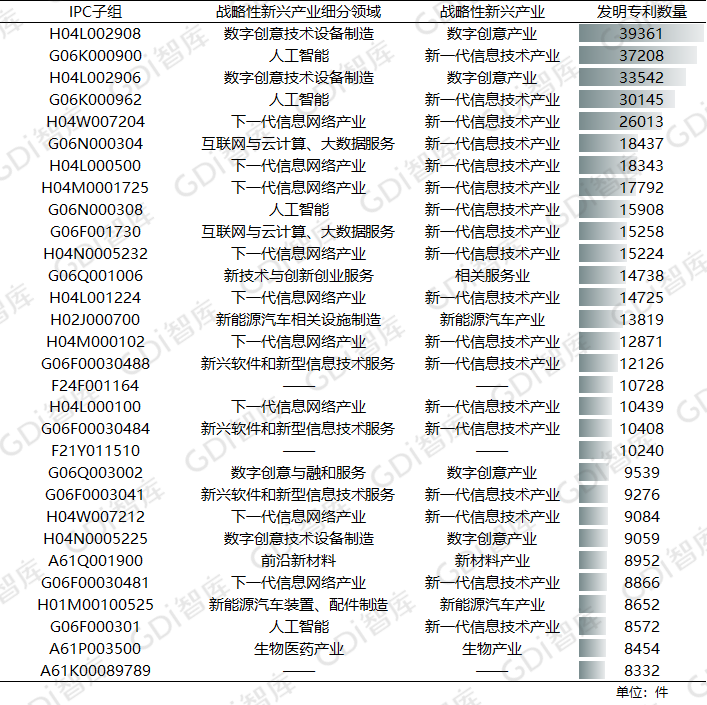 与以往相比,本次报告首次通过选取发明专利公开量在前30名的IPC子组,对粤港澳大湾区战略性新兴产业进行分析。