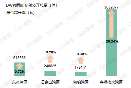 粤港澳大湾区同族专利公开量和复合增长率位居四大湾区之首