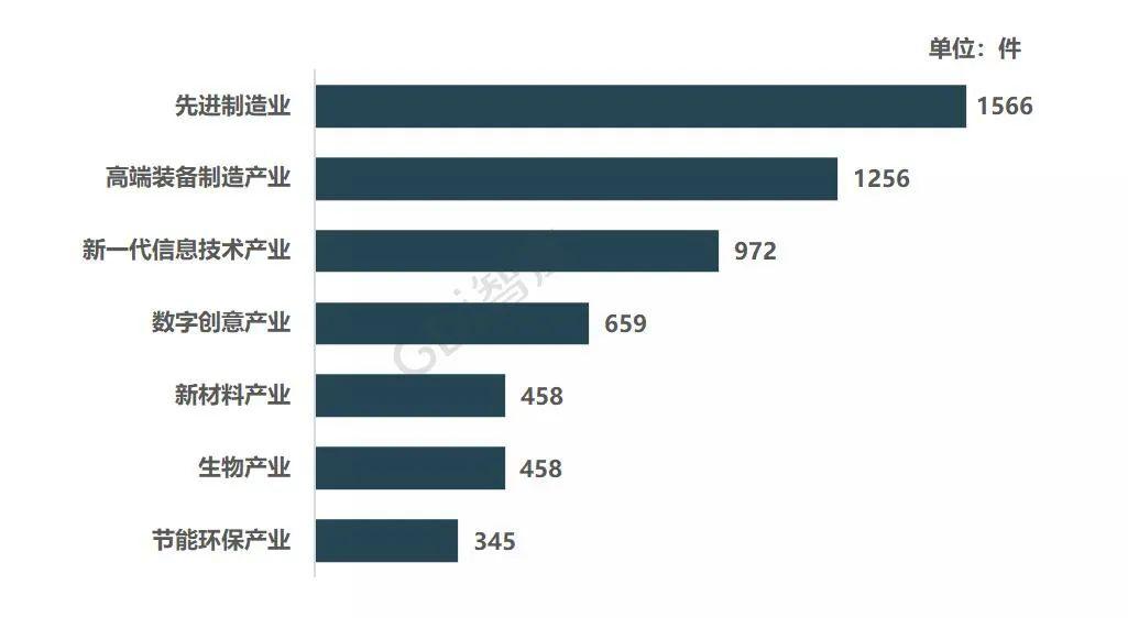 47家属于新兴产业的企业平均发明总量为996件,同比增长147件。先进制造业平均发明总量最高,企业平均公开量为1566件,同比增加335件,同比增幅为31.34%;高端装备制造产业发明总量以1256件位居第二,新一代信息技术产业企业以972件位列第三。