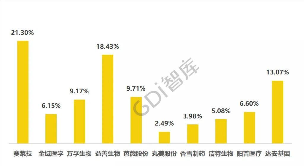 发明总量排名前三的企业业务领域各有侧重,侧面反映出广州生物医药企业有较为完整的生态圈和产业链,具有较强的竞争力。广药集团主要从事药品、医疗器械、医疗服务等,赛莱拉专注于干细胞研究、储存,金域医学以第三方医学检验及病理诊断业务为核心业务。