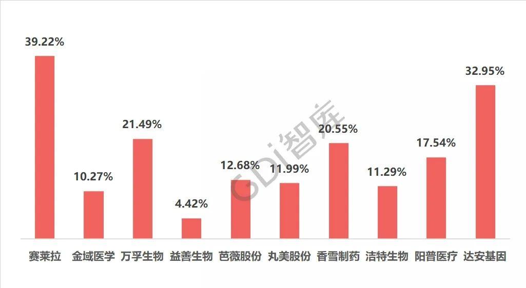 研发投入强度是创新能力持续增强的有力保障,对提高企业科技实力和核心竞争力具有重要意义。研发投入强度的增加有助于核心技术的创新产出水平。在10家公布年报的上市样本企业中,都保持相对较高的研发投入,研发投入强度持续高企,筑基未来高质量发展。2019年,赛莱拉、益善生物、达安基因研发投入强度均超过10%;芭薇股份、万孚生物、阳普医疗、金域医学、洁特生物研发投入强度在5%-10%之间。