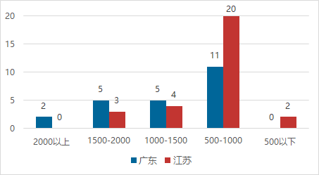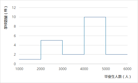 从毕业生人数的分布情况看,毕业生人数以4000—5000人居多,毕业生人数均在1000人以上,且1000-2000人的学校仅有一所。