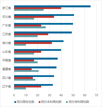 图 各省份民办高校(总数前十省份)