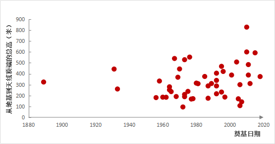 图3 WFGT高塔奠基时间与高度散点分布