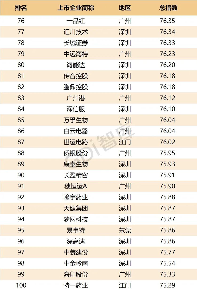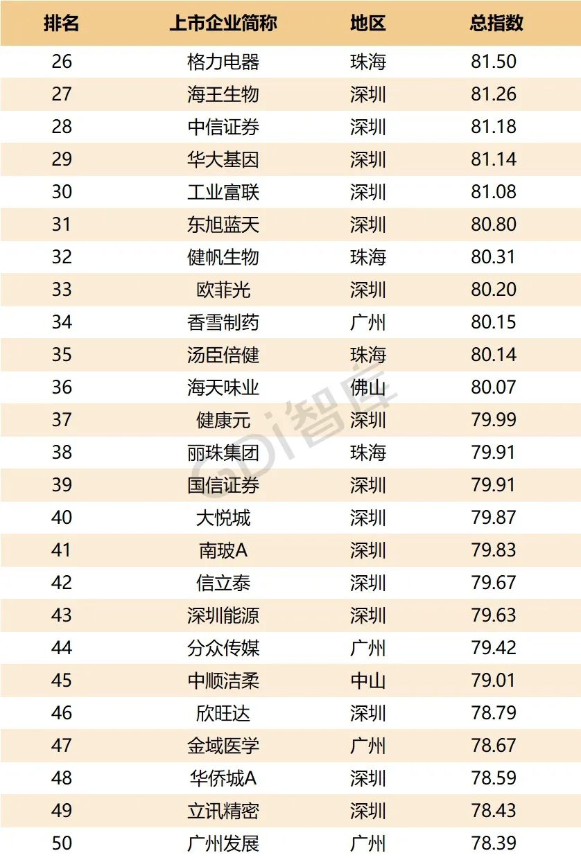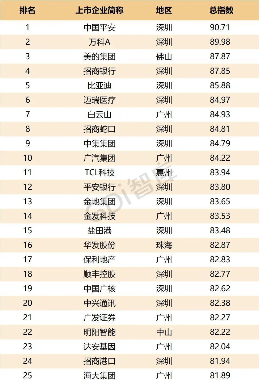 粤港澳大湾区企业社会责任影响力(上市企业)榜