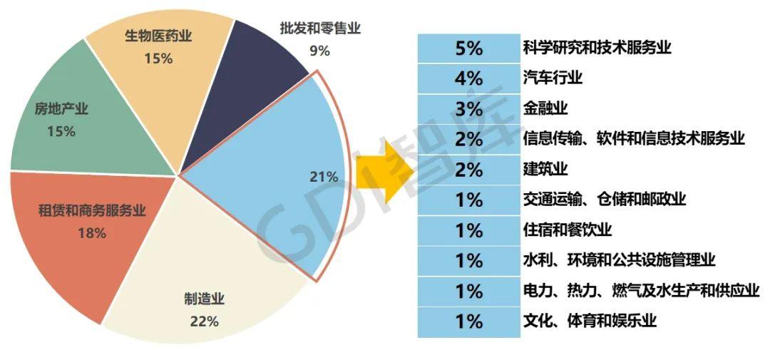 “广州榜”上榜企业分布在15个行业,其中制造业企业数量位列第一,有22家。租赁和商务服务业位居第二,有18家。房地产业和生物医药业并列第三,均为15家。按企业注册类型分析,内资企业75家(其中国有企业22家,占上榜内资企业的29.33%);港、澳、台商投资企业16家;外商投资企业9家。新冠肺炎疫情发生以来,生物医药类企业助力疫情防控,勇担社会责任。生物医药业有广药集团、香雪制药、洁特生物、金域医学、万孚生物、大参林等15家企业上榜,较上年增加8家,同比增长114.29%。