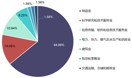 64家广州企业涉及18个行业大类,计算机、通信和其他电子设备制造业企业数量最多,其次是通用设备制造业,研究和实验发展、软件和信息技术服务业并列第三。