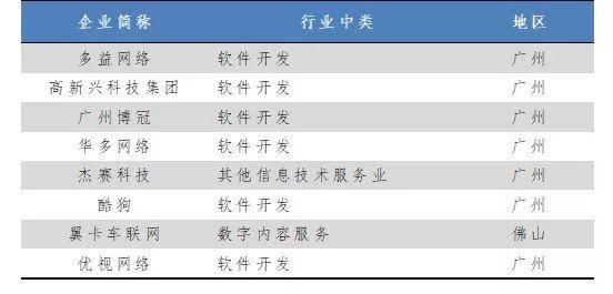 软件和信息技术服务业包含软件开发等9个中类,本次入榜的8家软件和信息技术服务业企业涵盖其中的3个中类,其中占比最大的是软件开发(6家),占75%。其他信息技术服务业和数字内容服务各有1家。其中广州有7家企业上榜,佛山有1家。