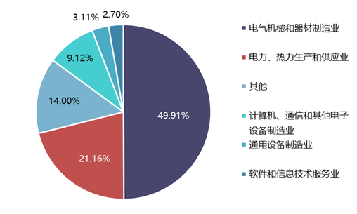 专利是创新的关键衡量因素,发明总量直接体现了一个企业的创新能力。以上榜的100家企业的所有发明总量为总体,电气机械和器材制造业发明总量占49.91%,创新能力居所有行业之首。