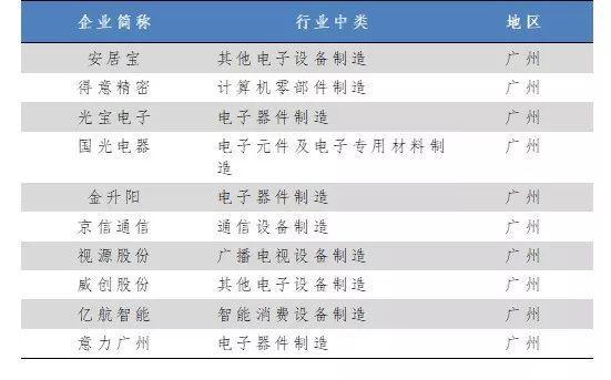 计算机、通信和其他电子设备制造业包含计算机制造等9个中类,本次入榜的10家计算机、通信和其他电子设备制造业企业均位于广州,涵盖其中的7个中类,其中占比最大的是电子器件制造(3家),其次是其他电子设备制造(2家)、智能消费设备制造(1家)。