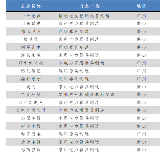 电气机械和器材制造业包括电机制造等9个领域,本次入榜的18家电气机械和器材制造业企业涵盖其中的5个领域,主要为家用电力器具制造(9家)和照明器具制造(5家)。其中佛山占13家,占比72.22%。