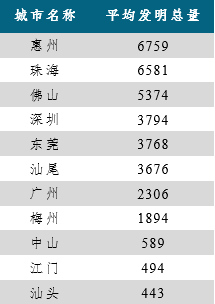 表3‑1 广东各城市入围机构五年发明总量平均值