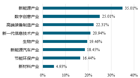 从产业角度来看,新能源产业、数字创意产业和高端装备制造产业的成长性最强,新能源汽车产业、节能环保产业和新材料产业的成长性较弱。