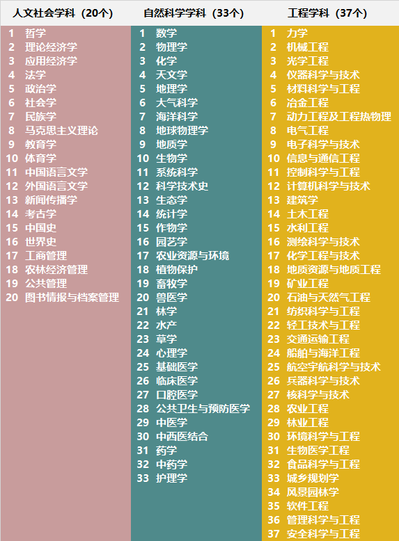 此次评价的90个学科包括20个人文社会学科、33个自然科学学科和37个工程学科。