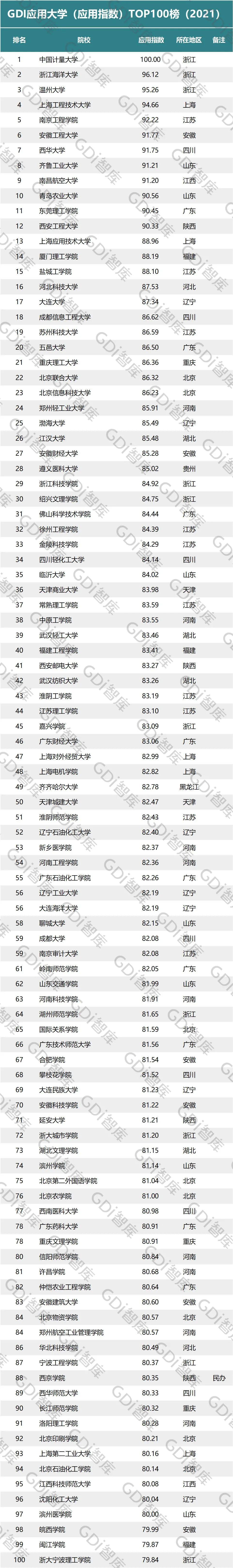 “GDI应用大学排行TOP800榜(2021)”