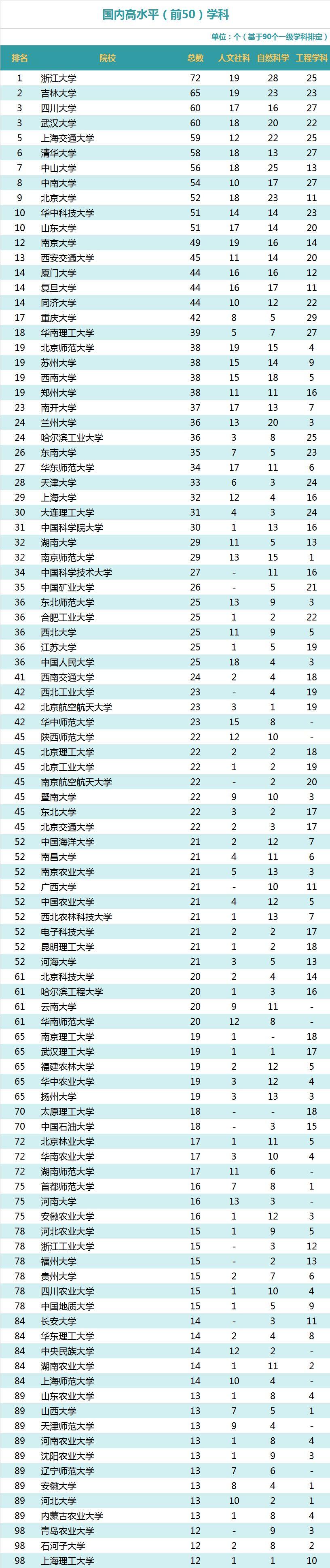 “2019学科榜”研制团队认为,进入前50位一般可认为属于“国内高水平学科”。“2019学科榜”主要是对国内大学高水平学科进行评估排行。