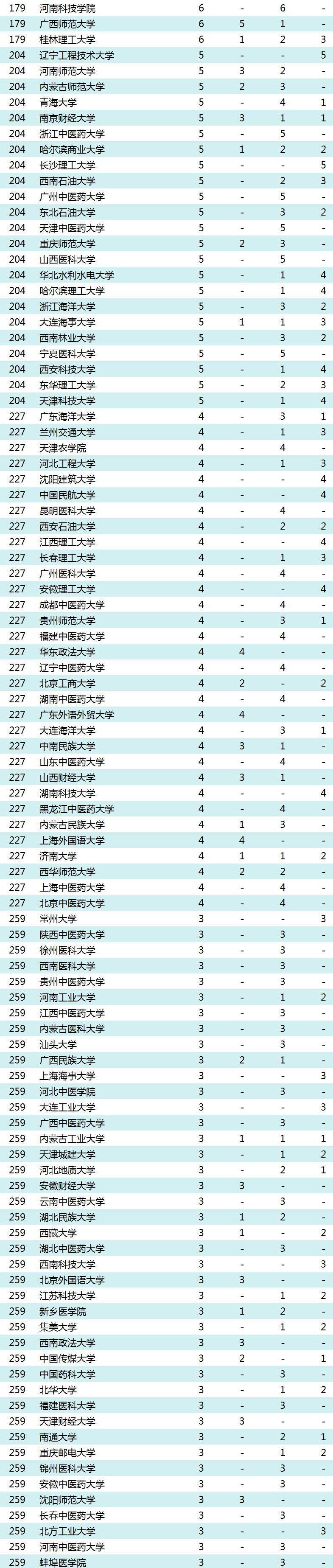 590所院校中有305所的自然科学学科一级学科进入“国内高水平学科”,其中浙江大学28个,中山大学25个,北京大学23个、吉林大学23个,上海交通大学22个,武汉大学20个、兰州大学20个。