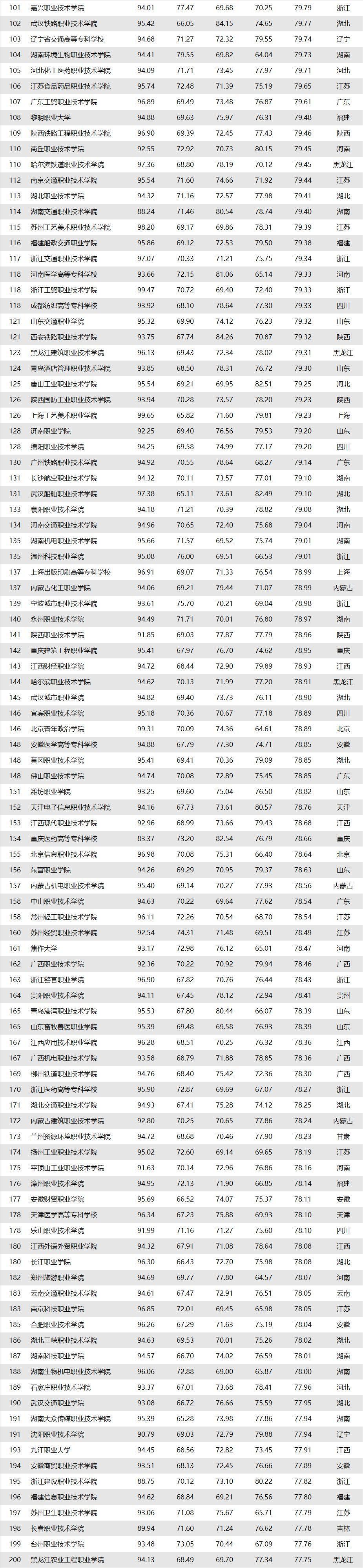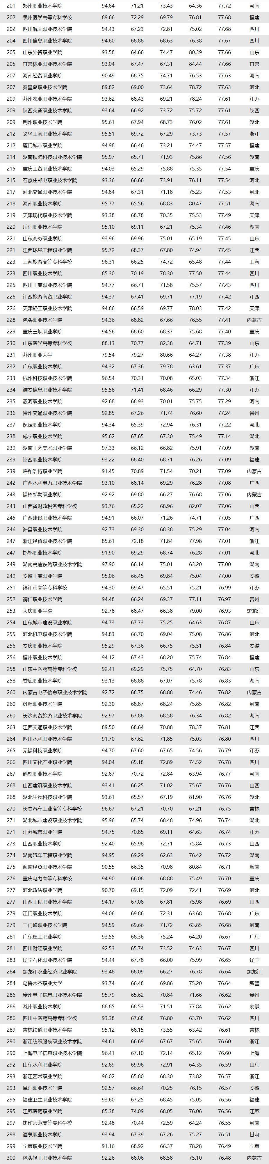 深圳职业技术学院四项指标(教育竞争力指数、职场竞争力指数、品牌竞争力指数、二次评估指数)均为100,即其各项指标及综合指标均排名全国第一。