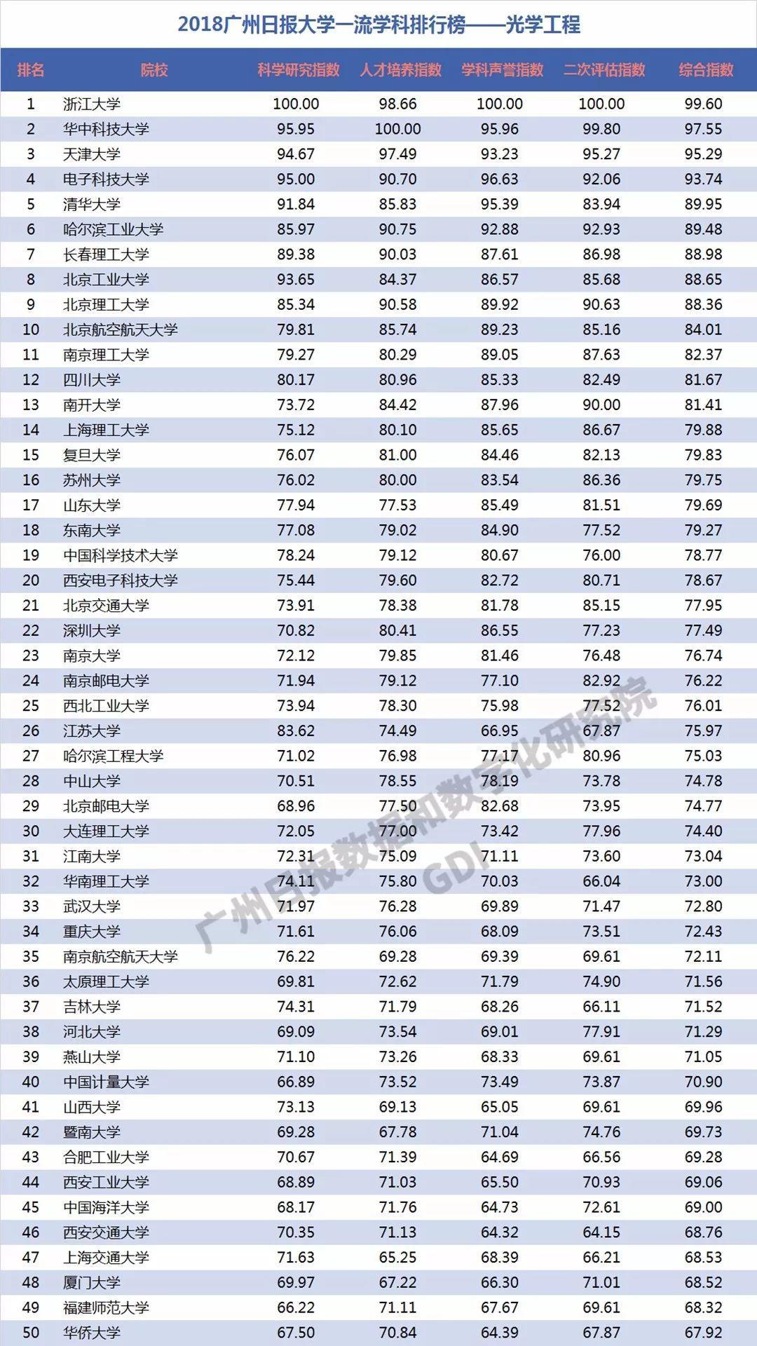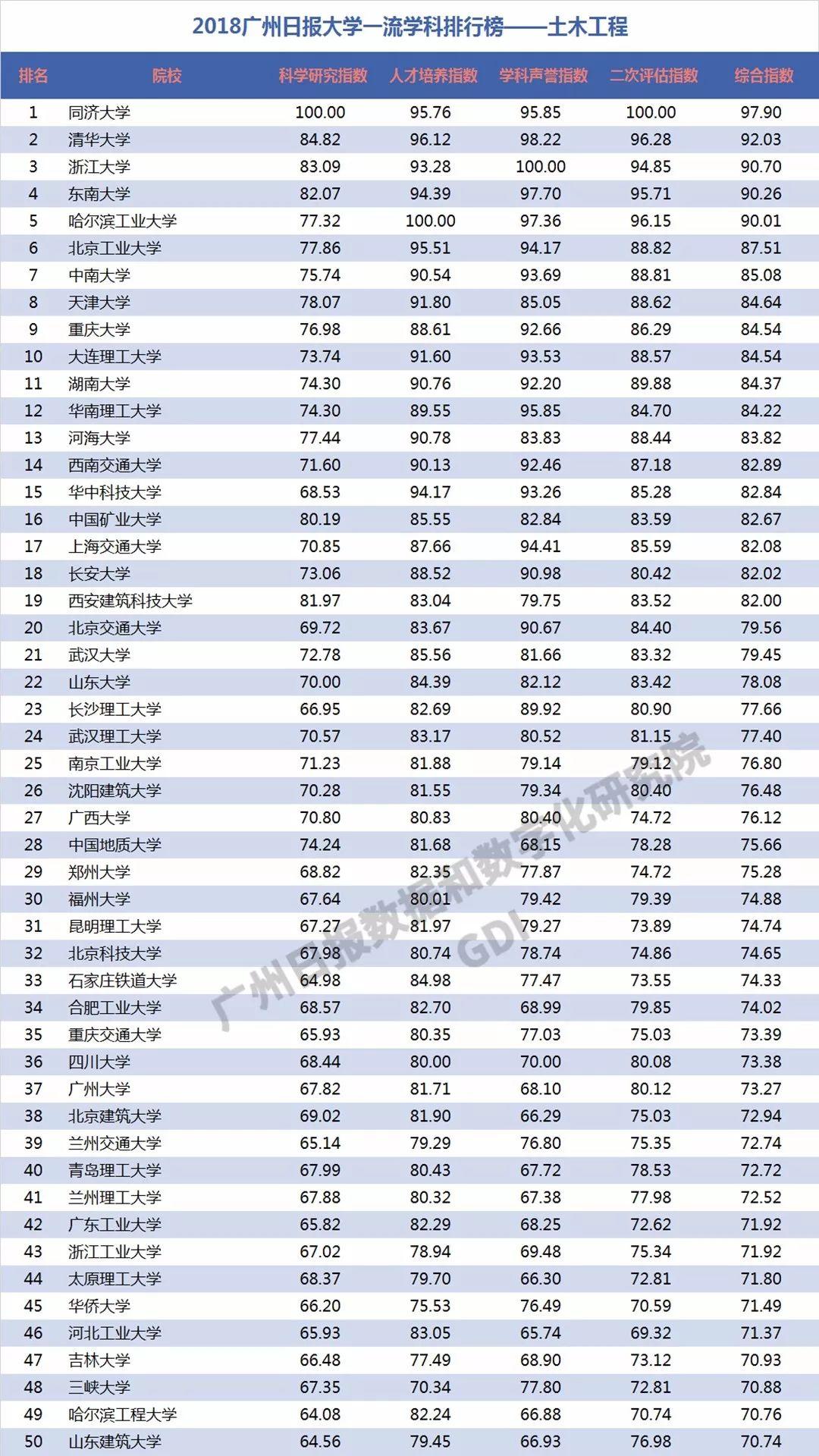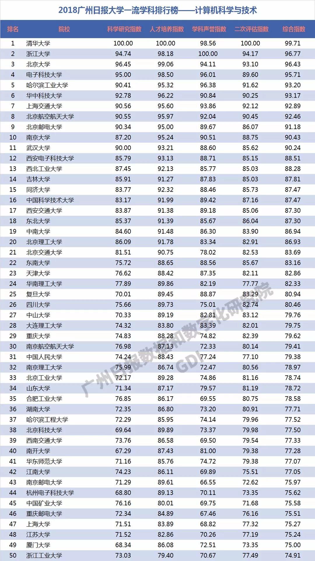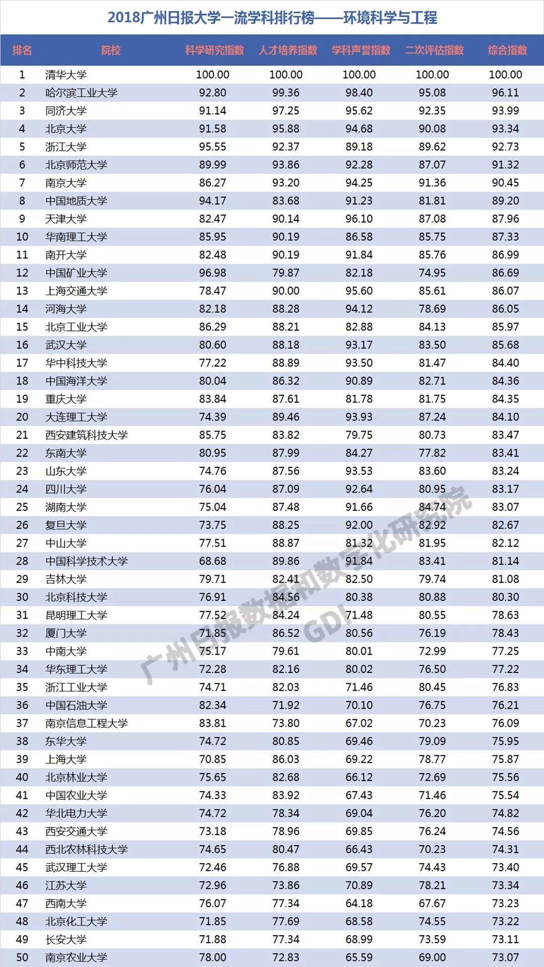 2018年6月27日,广州日报数据和数字化研究院(GDI智库)发布“2018广州日报大学一流学科排行榜”(下称“2018学科榜”),这是GDI智库连续第三年发布国内大学一流学科排行榜。“2018学科榜”坚持成果导向,不关注一般性投入指标,通过科学研究指数、人才培养指数、学科声誉指数和二次评估指数四个维度,对587所高校的90个学科进行科学评价,实现对国内大学学科(不包括艺术类学科)评价的全覆盖。