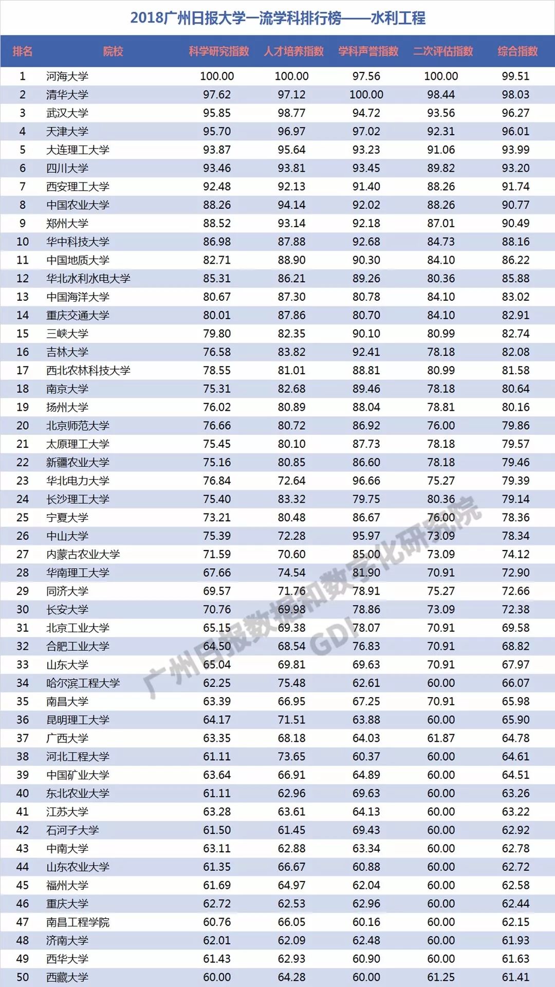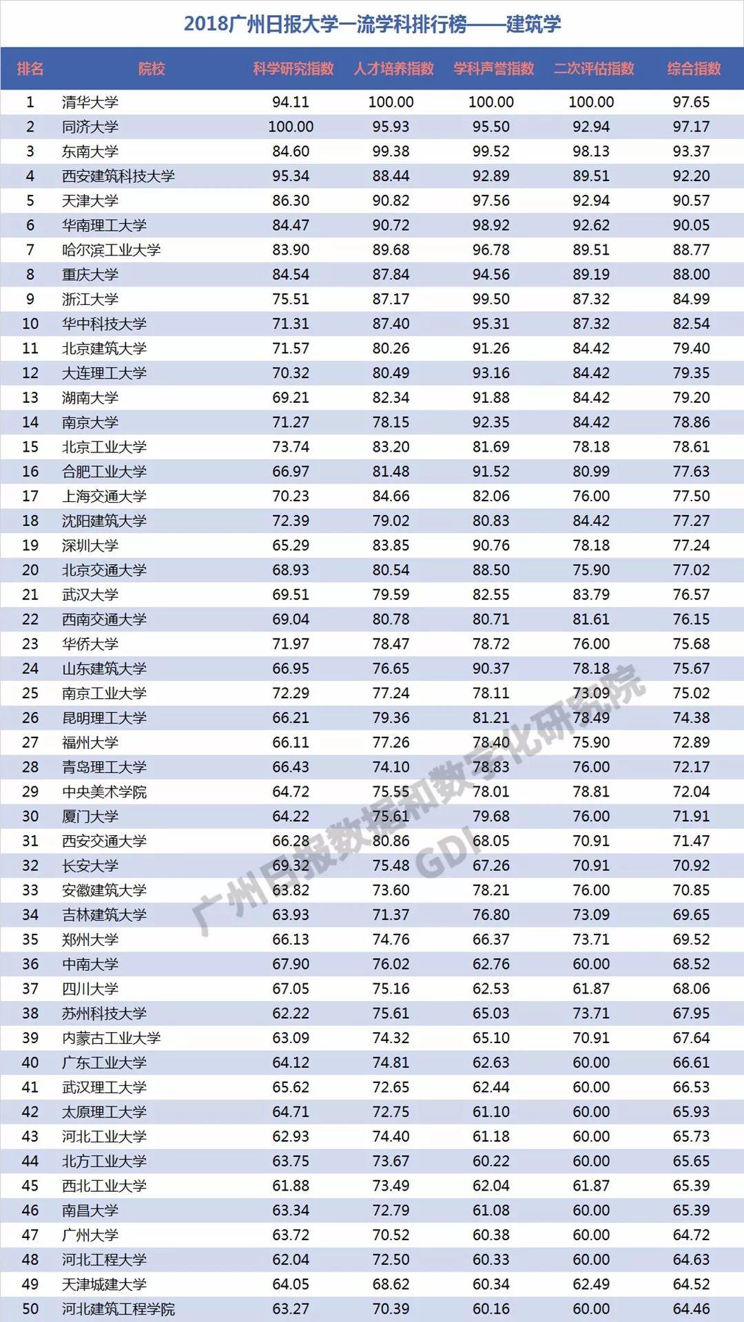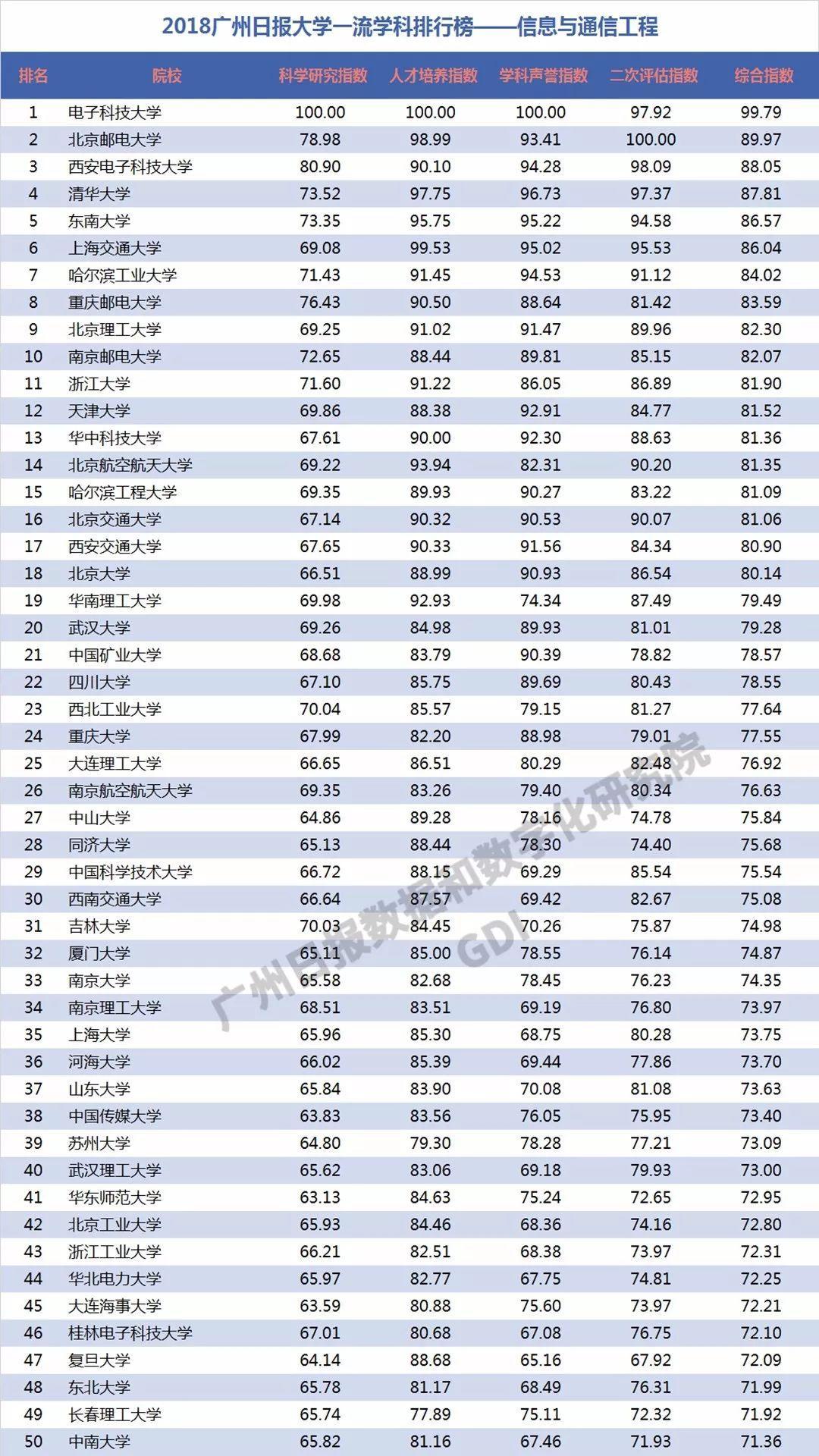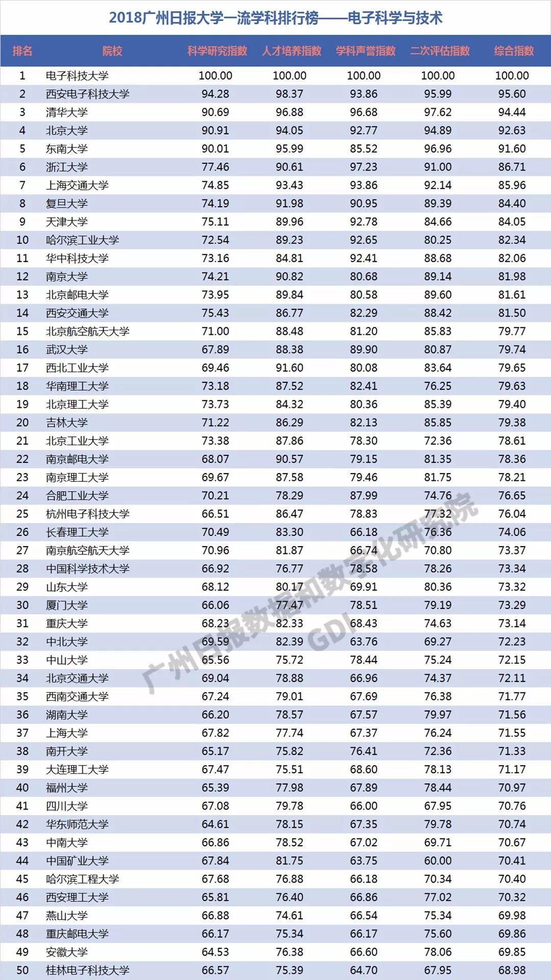 2018年6月27日,广州日报数据和数字化研究院(GDI智库)发布“2018广州日报大学一流学科排行榜”(下称“2018学科榜”),这是GDI智库连续第三年发布国内大学一流学科排行榜。“2018学科榜”坚持成果导向,不关注一般性投入指标,通过科学研究指数、人才培养指数、学科声誉指数和二次评估指数四个维度,对587所高校的90个学科进行科学评价,实现对国内大学学科(不包括艺术类学科)评价的全覆盖。