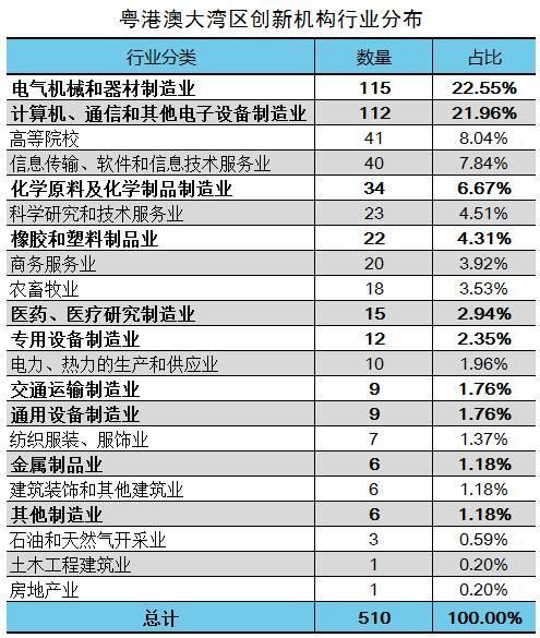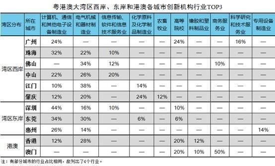 粤港澳大湾区是全球制造业最发达区域,但在产业布局上存在同质化现象,计算机、通信和其他电子设备制造业和电气机械和器材制造业各有9个城市入围创新机构行业TOP3,竞争强于合作;