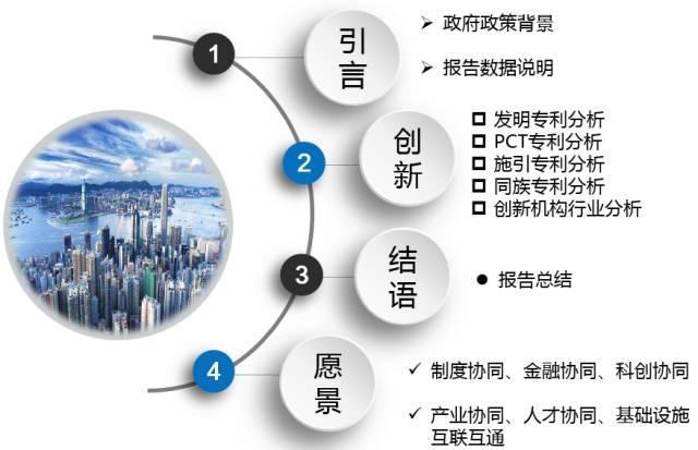 报告反映粤港澳大湾区11座城市的创新能力和创新协同能力,聚焦发明专利、PCT专利、施引专利、同族专利等4大评价指标。将专利作为衡量粤港澳大湾区创新能力的重要尺度,以创新维度为重要评价指标,挖掘分析粤港澳大湾区近5年的专利数据。