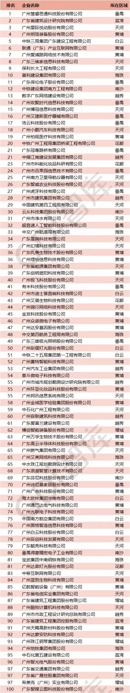 广州企业创新成长性TOP100榜(2023)