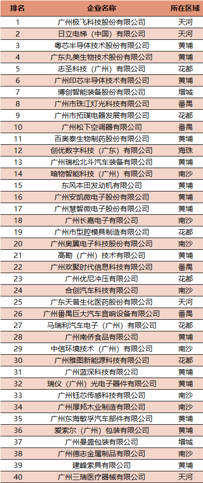 广州外商投资企业创新TOP40榜(2024)