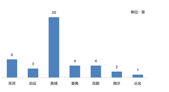 从企业分布区域分析,20家企业来自黄埔,其次是天河(6家),其余企业分布在番禺(4家)、花都(4家)、白云(3家)、南沙(2家)、从化(1家)。