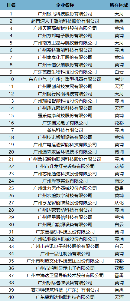 广州“隐形冠军”企业创新TOP40榜(2024)