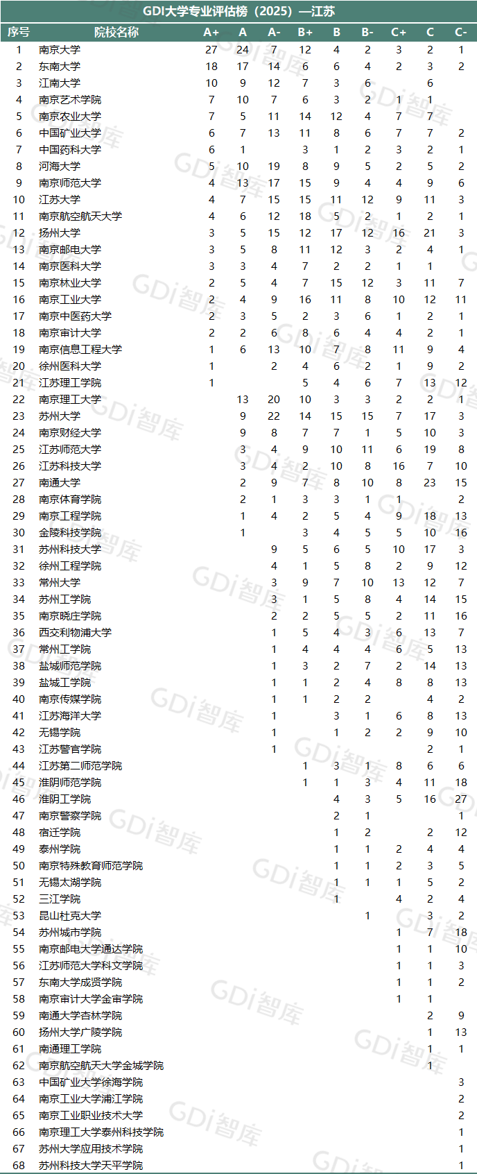 GDI大学专业评估榜(2025)—江苏▼