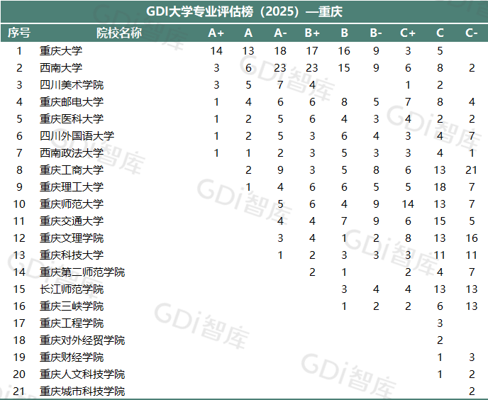 GDI大学专业评估榜(2025)—重庆▼
