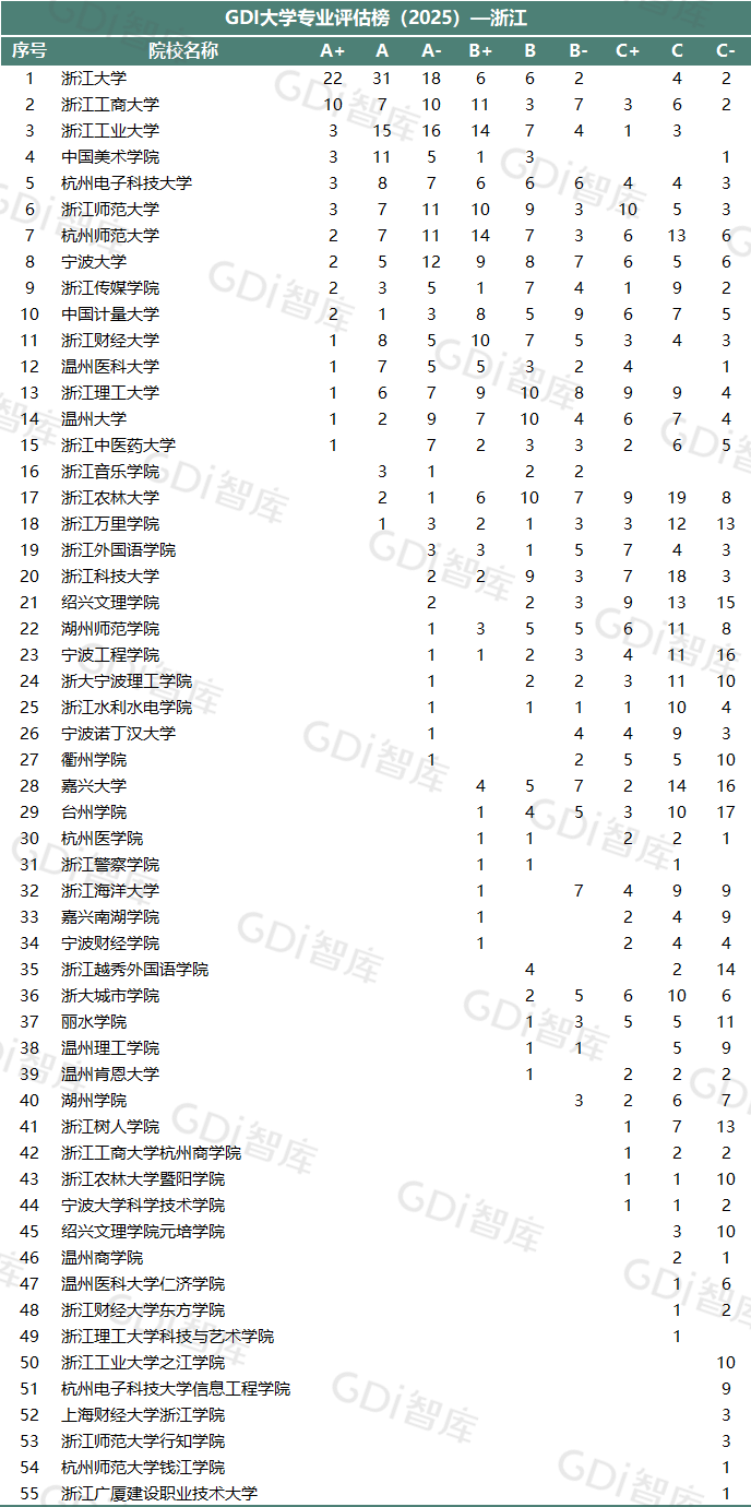 GDI大学专业评估榜(2025)—浙江▼
