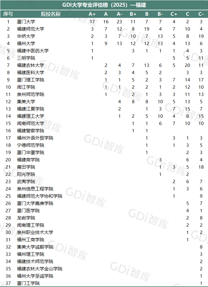 GDI大学专业评估榜(2025)—福建▼