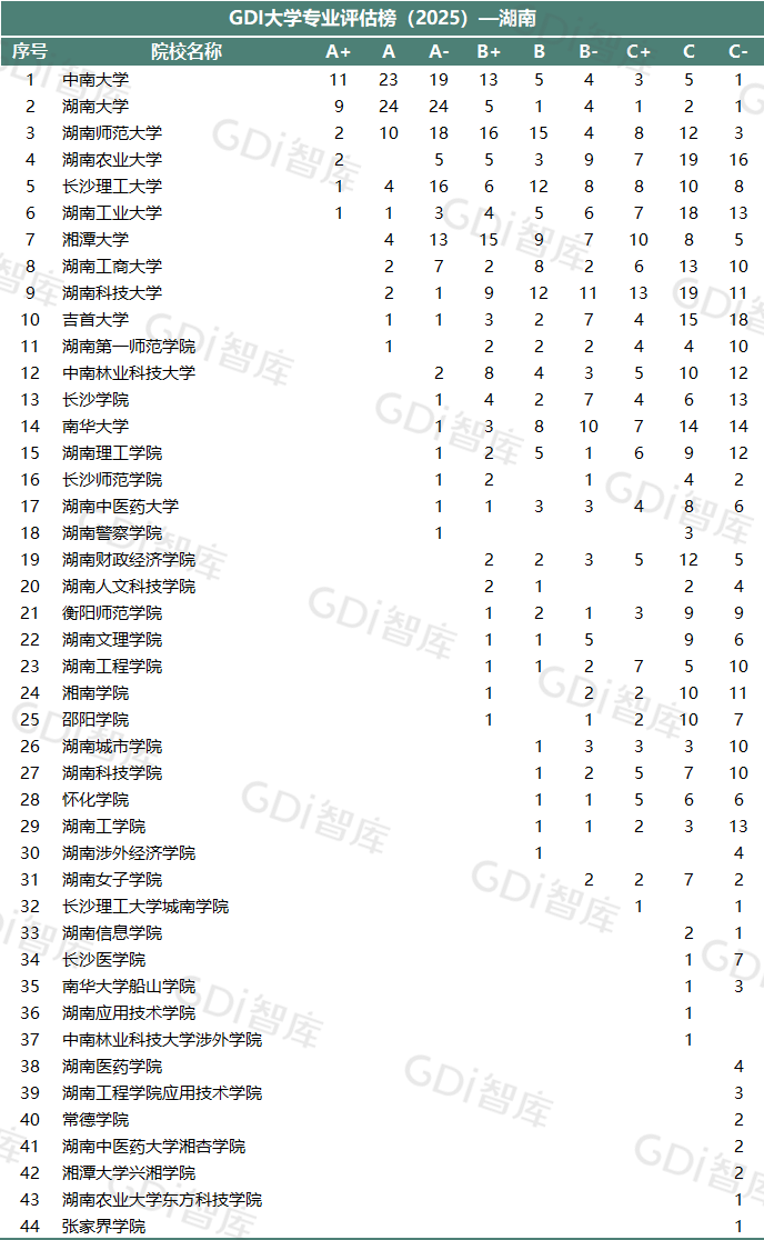 GDI大学专业评估榜(2025)—湖南▼